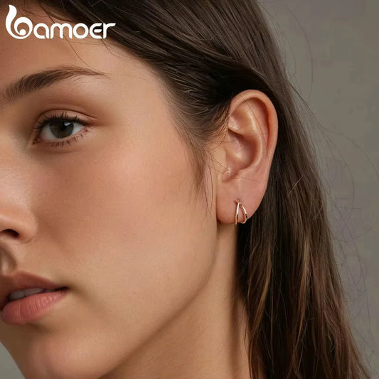 Brinco Prata 925 Banhada Ouro Branco Argola - Bamoer